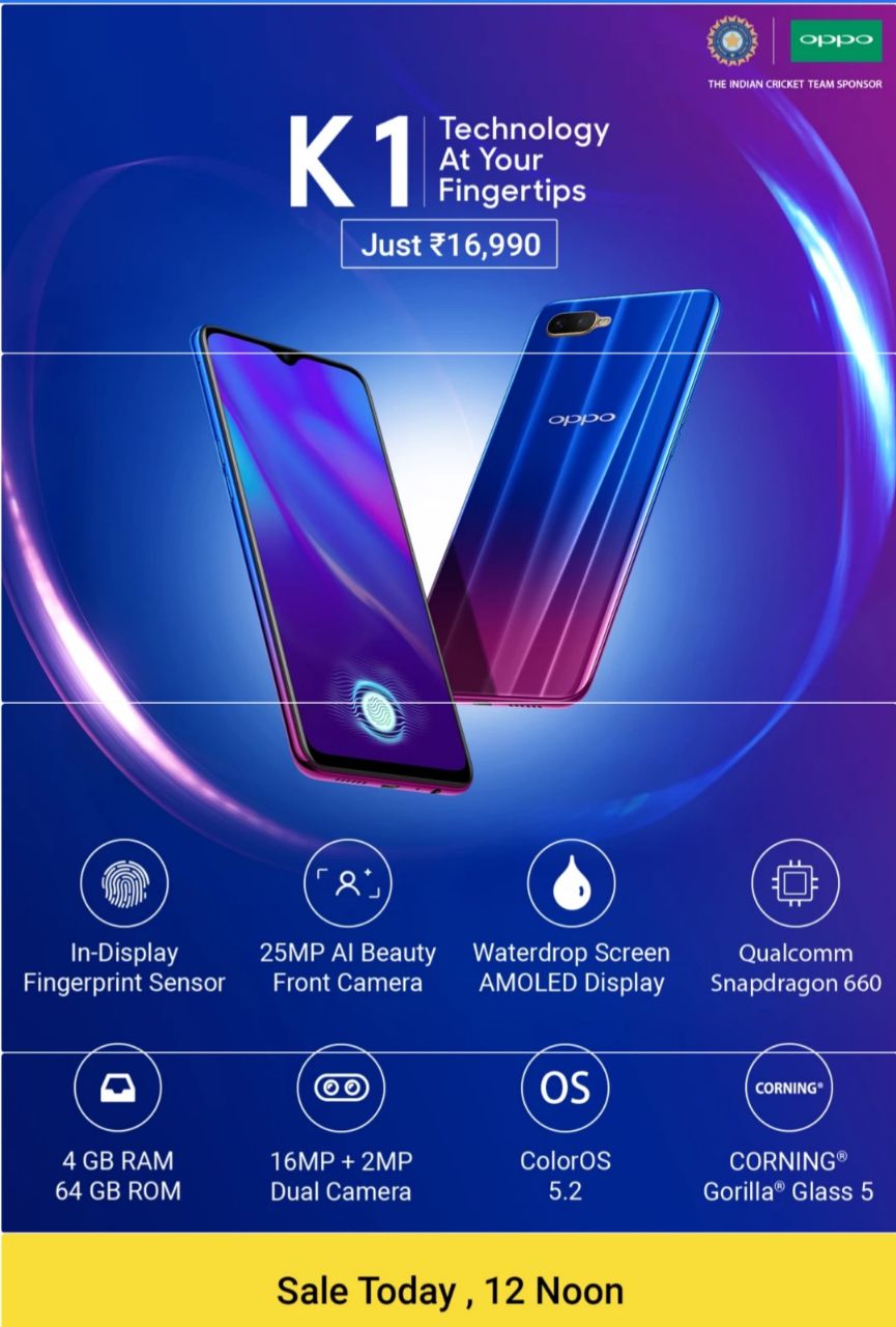 Live at 12 : Oppo K1 4GB + 64GB at Rs - 16,990