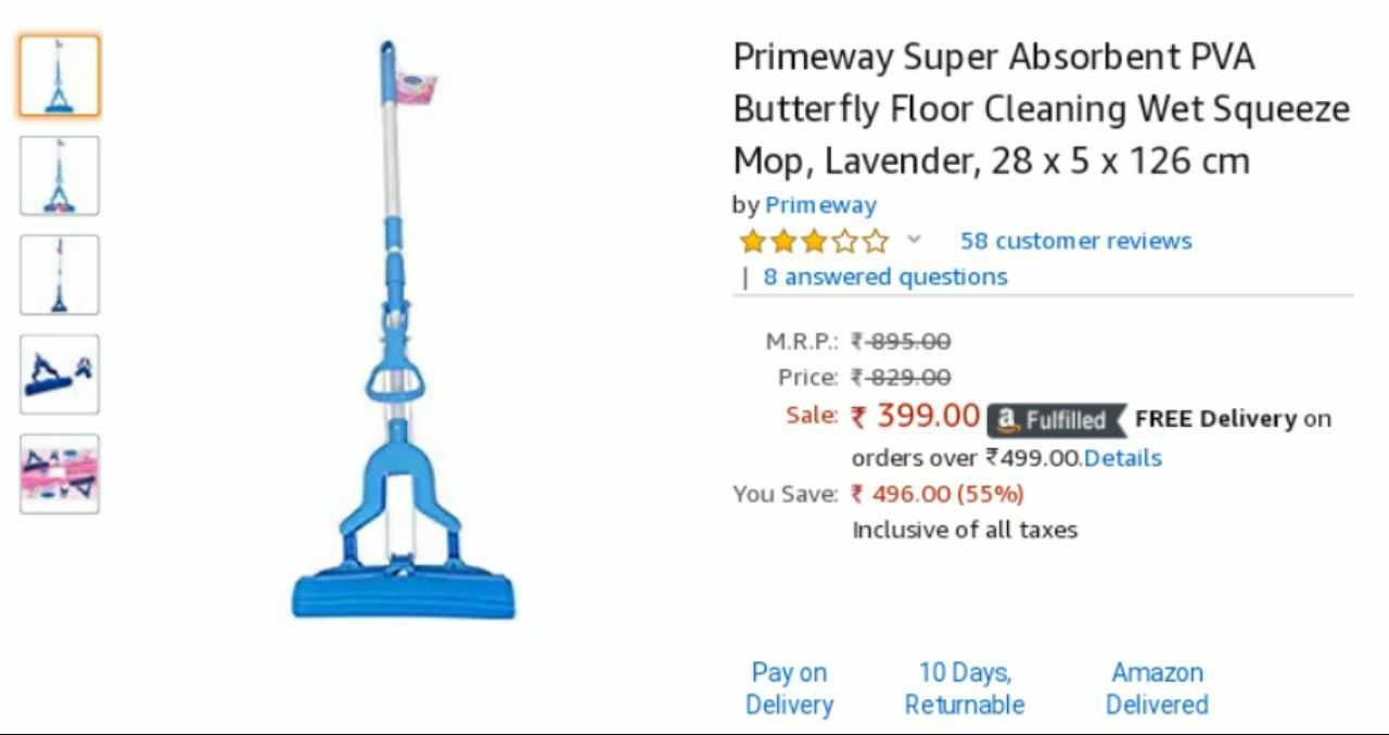 Primeway Super Absorbent PVA Butterfly Floor Cleaning Wet Squeeze Mop, at Rs - 399