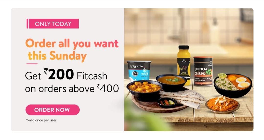 Eatfit – get ₹200 fitcash on order above ₹400 only for today (100% redeemable on next order)